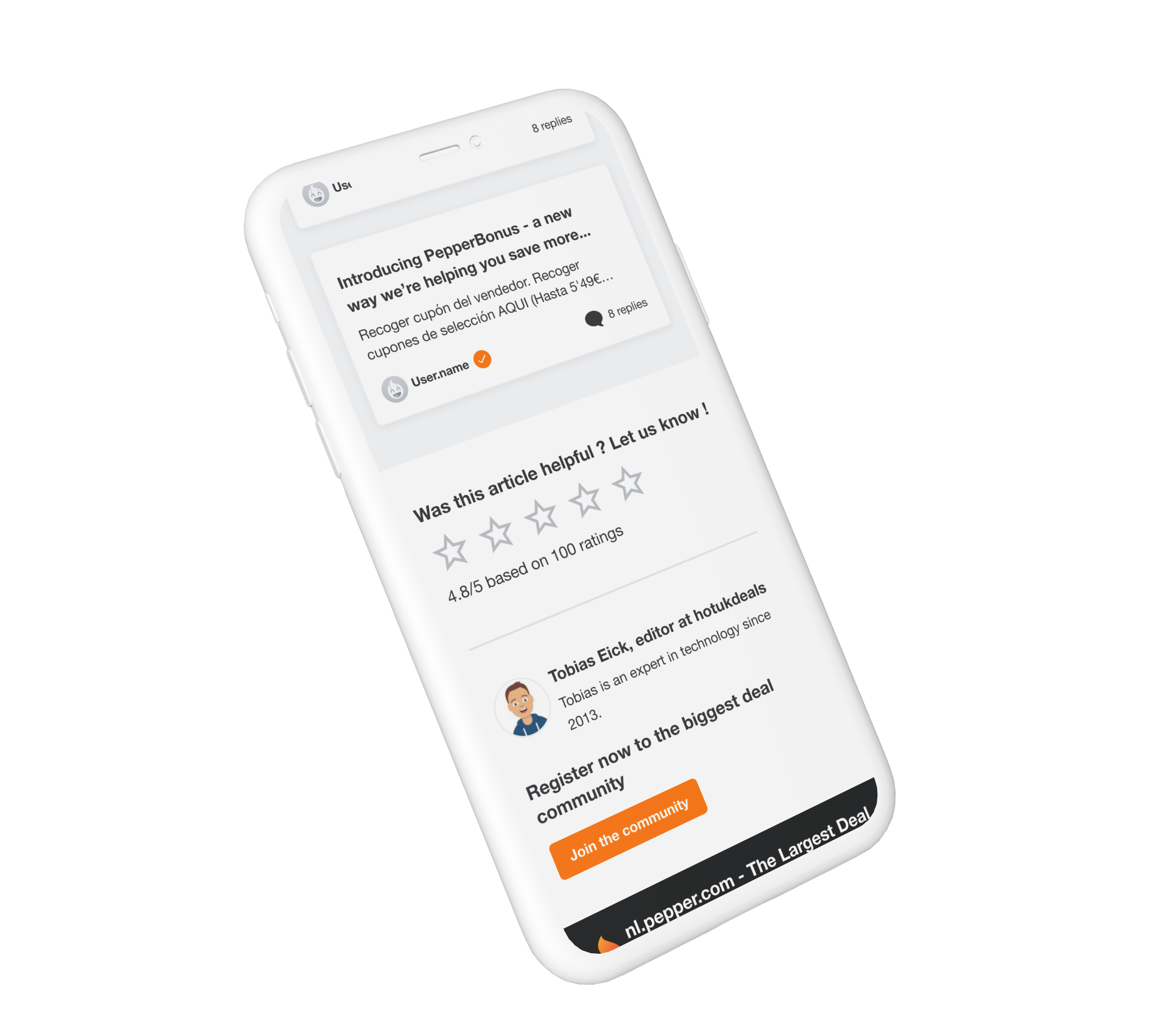 Pepper is a holding which has several platforms around the world, one of which is Hotukdeals. These platforms each bring together a large community of users to share interesting deals and rank them. Hotukdeals has over 2.4 million users to date.